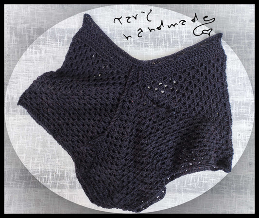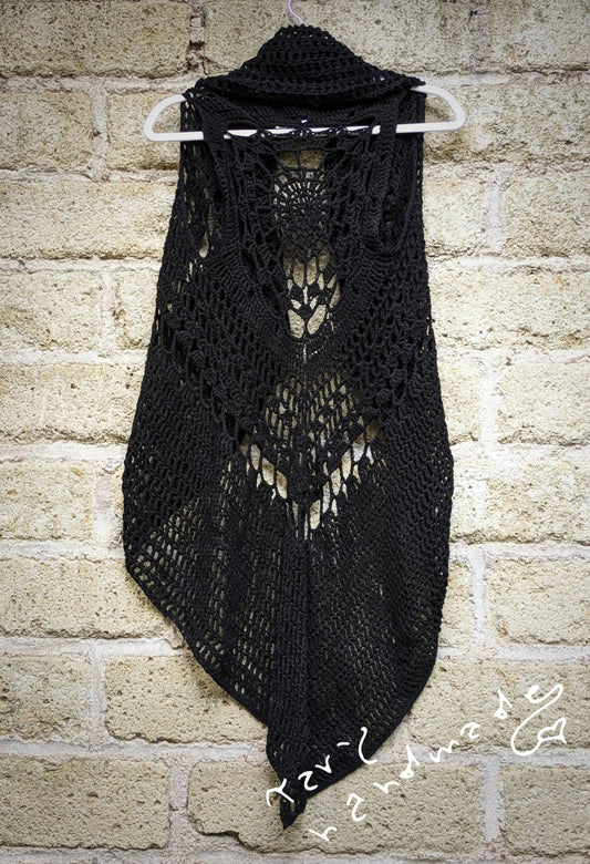 Mandala Nocturne – Gilet Lungo Crochet in Cotone Nero