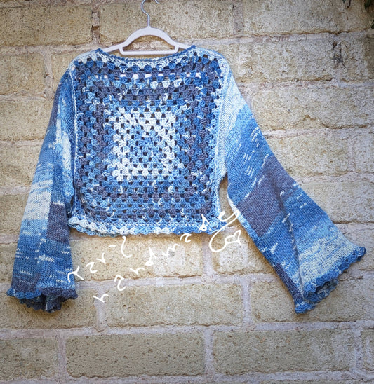 Nebbie di Mare – Maglia Boho-Grunge con Granny Square in Filato Sfumato