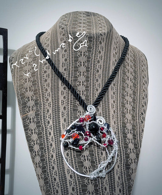 Radicanera - Collana Albero della Vita in alluminio wire, pietre dure e cristalli