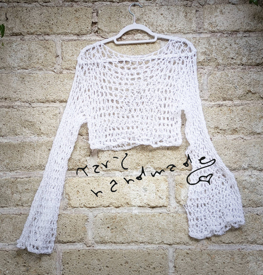 Etere Selvaggio – Crop Top Crochet a Rete con Maniche Ampie