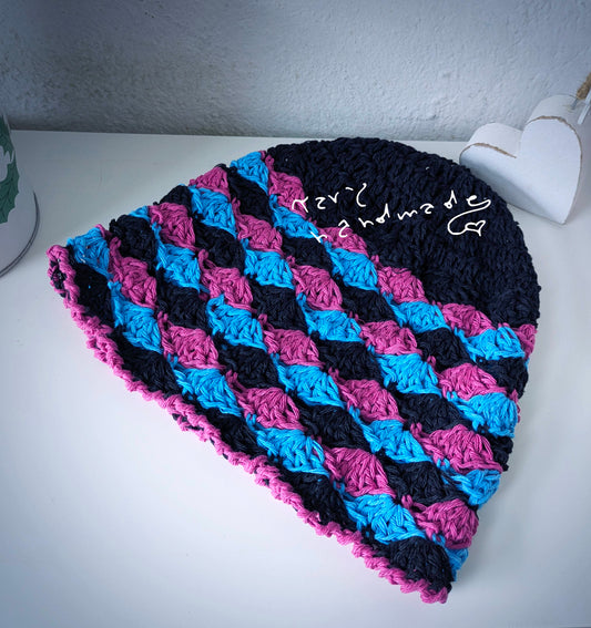 Cloche “Boho Waves” – Cappello crochet in cotone con onde colorate