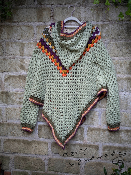 Mantella Grunge Crochet Multicolor con Cappuccio