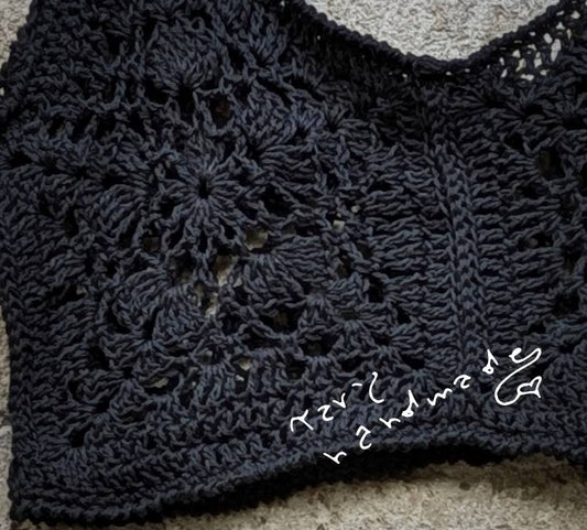 Petalo d’Ombra – Top Corto Gothic Crochet in Cotone Nero