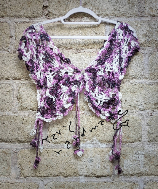 Ali di Nebbia – Gilet Farfalla Fairy a Crochet con Riflessi Iridescenti