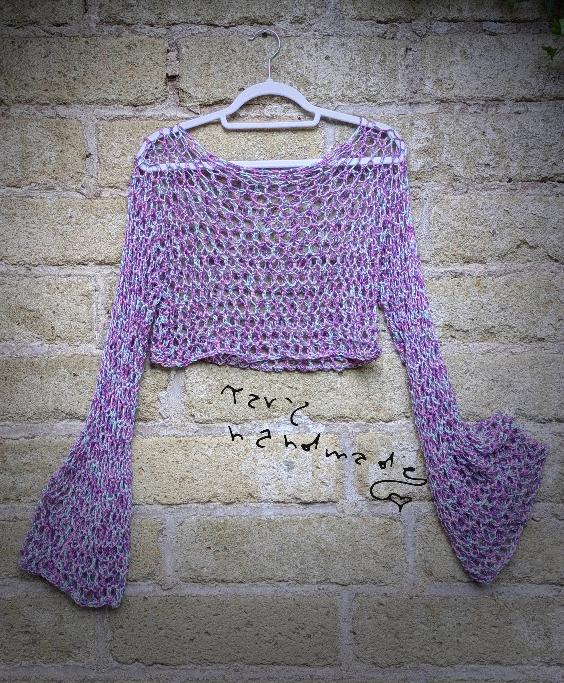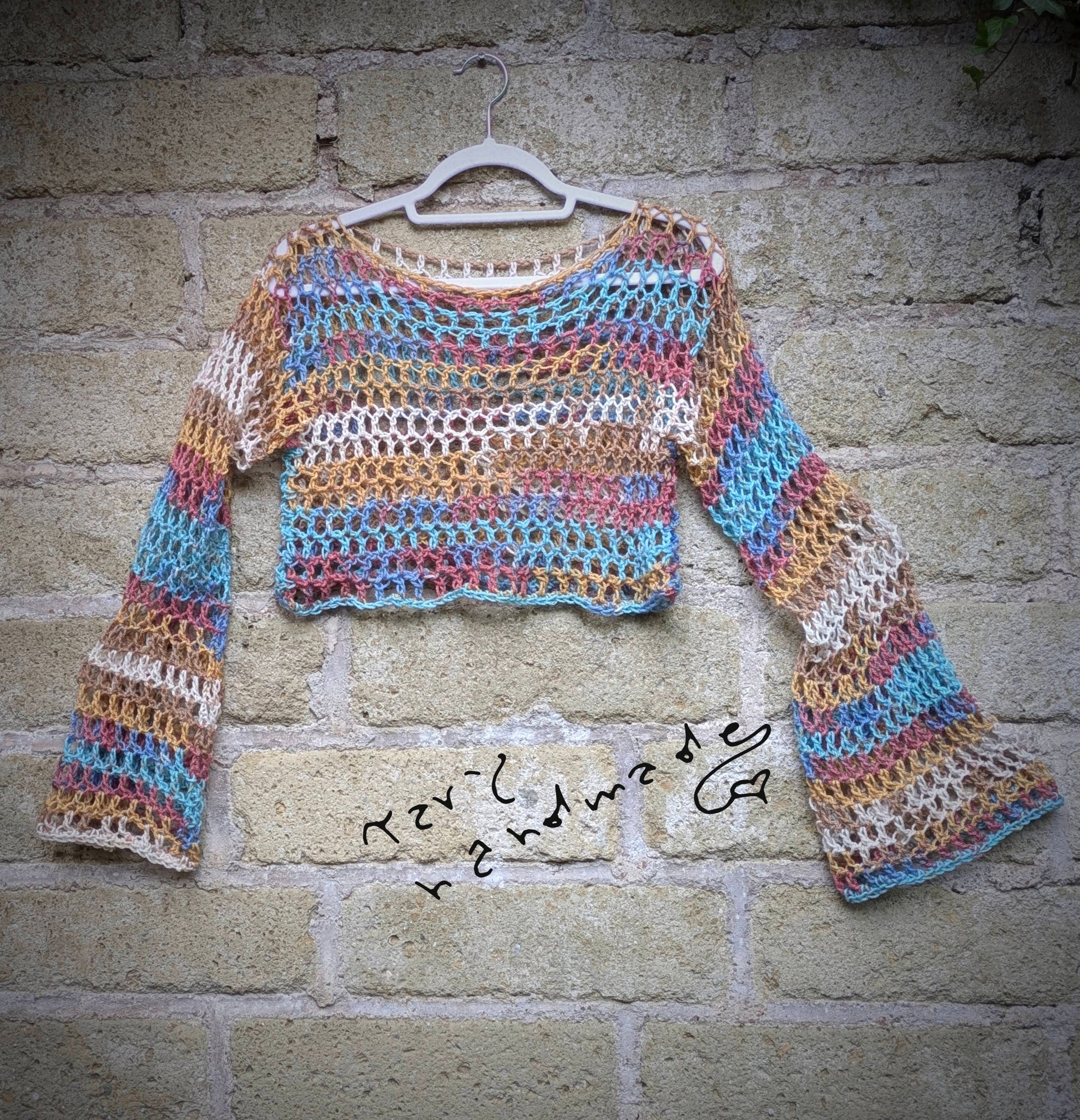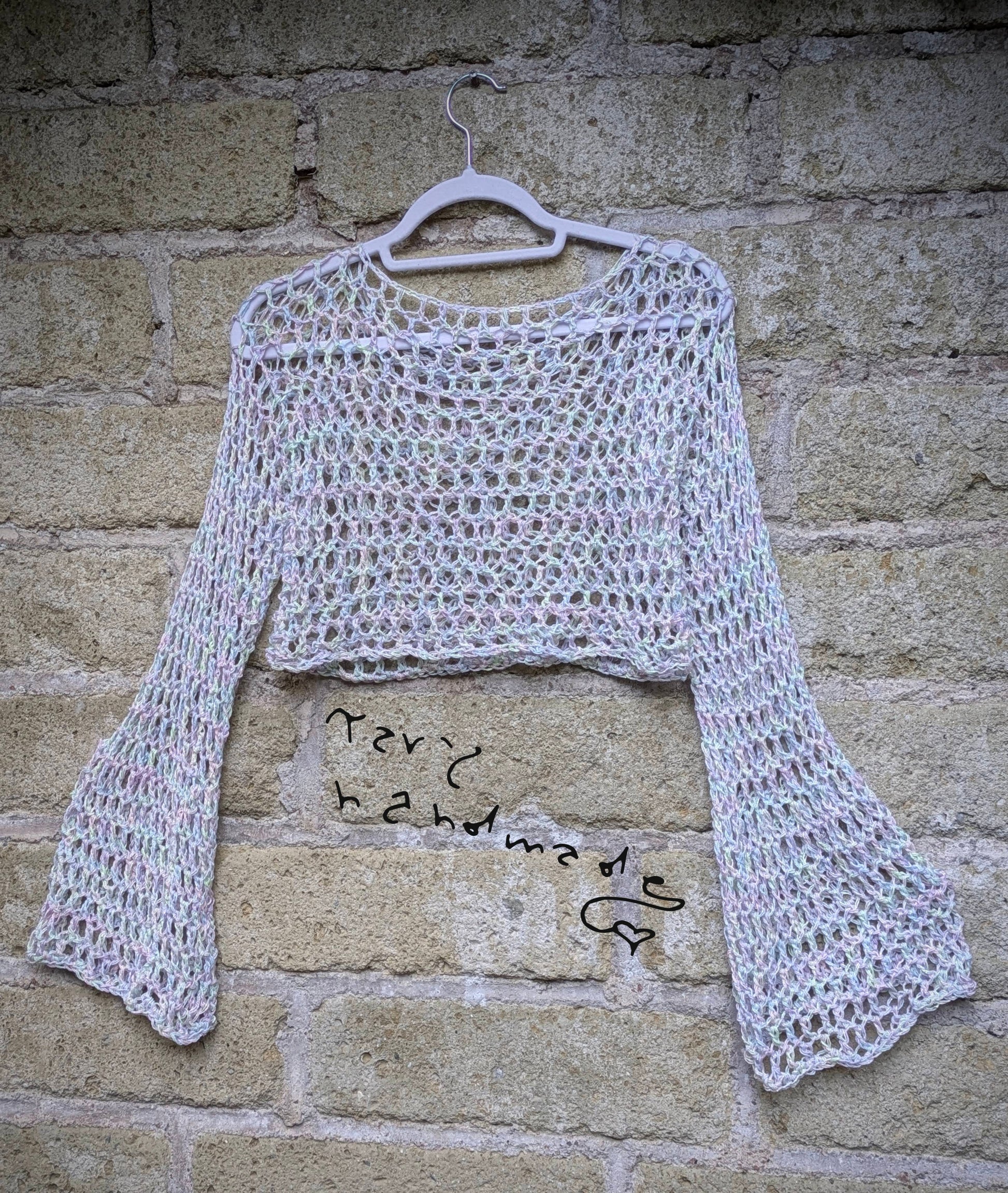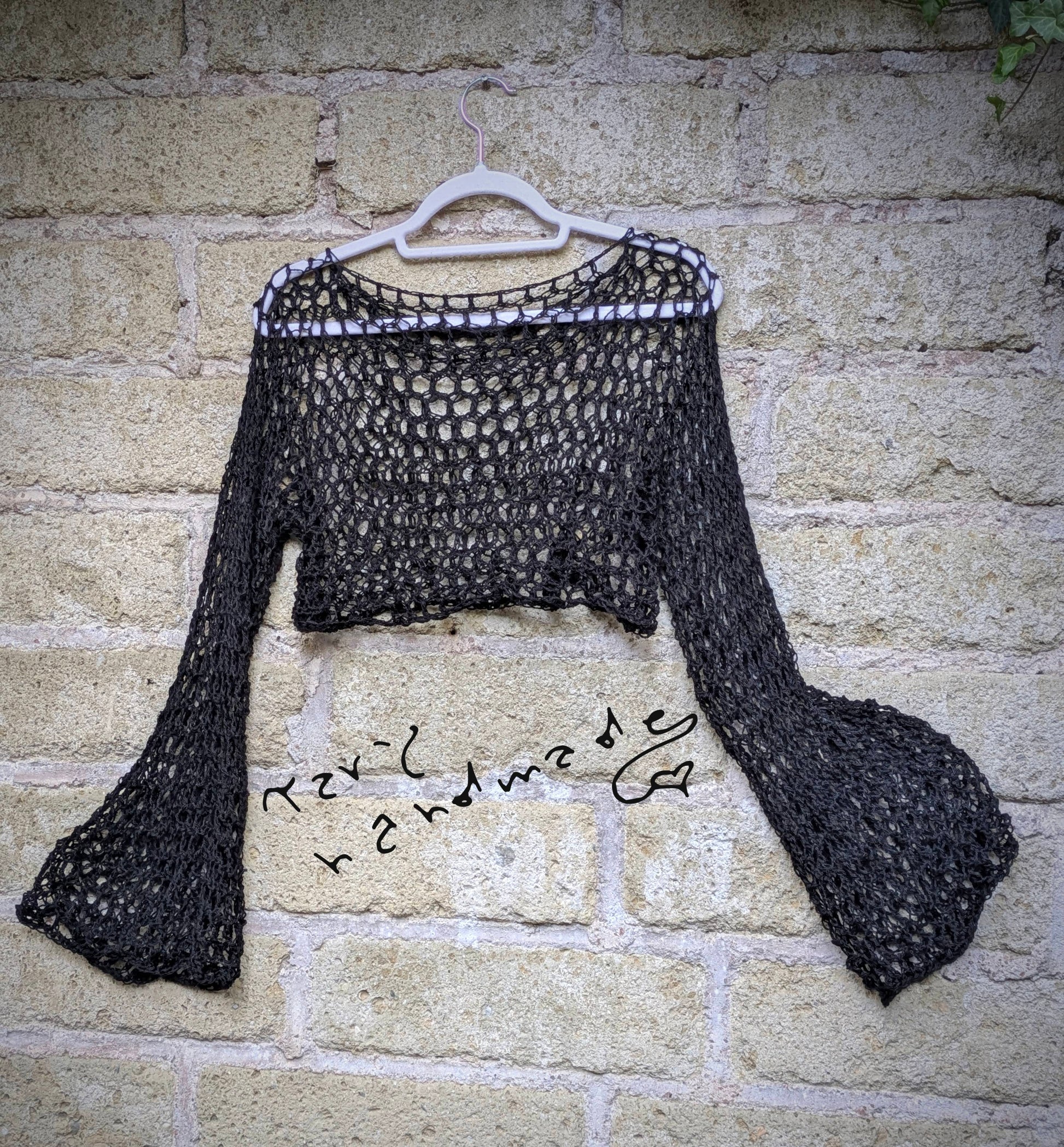 Etere Selvaggio – Crop Top Crochet a Rete con Maniche Ampie